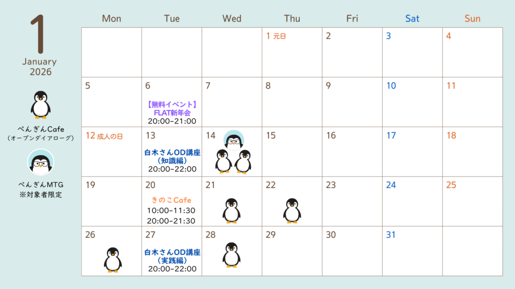 学びたい オープンダイアローグ・カレッジオープンダイアローグ入門講座 体験したい ふらっとCafe 話を聴いて欲しい ぺんぎんCafe 実践したい 共に学び合うリフレクティング講座対話の基礎トレーニング 場を開きたい きのこCafe 活動団体について知りたい オープンダイアローグ大博覧会団体リスト 最新のお知らせ 2025年9月4日 FLATイベント 【実践練習編】白木孝二さんに学ぶ「対話の基礎トレーニング」 2025年9月4日 FLATイベント 【基礎知識編】白木孝二さんと学ぶ「オープンダイアローグ入門講座」 2025年8月28日 FLATイベント ふらっとオープンミーティング 2025年5月1日 FLATイベント オープンダイアローグ未来会議2025inTOKYO(対面+オンライン) 2025年5月1日 FLATイベント 【対話の助けになる連続講座】5/17「対話と暴力」+5/25「PTMFの基本的問い」 1 2 3 » 最新のお知らせ FLATのイベント 2025年9月4日 FLATイベント 【実践練習編】白木孝二さんに学ぶ「対話の基礎トレーニング」 2025年9月4日 FLATイベント 【基礎知識編】白木孝二さんと学ぶ「オープンダイアローグ入門講座」 2025年8月28日 FLATイベント ふらっとオープンミーティング 2025年5月1日 FLATイベント オープンダイアローグ未来会議2025inTOKYO(対面+オンライン) 2025年5月1日 FLATイベント 【対話の助けになる連続講座】5/17「対話と暴力」+5/25「PTMFの基本的問い」 1 2 3 » FLATイベントカレンダー