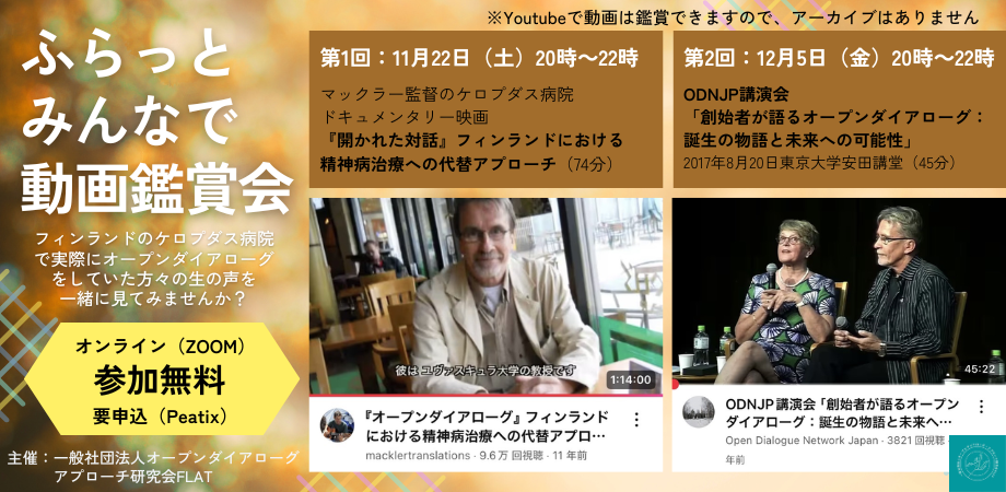 【主催】一般社団法人オープンダイアローグ ・アプローチ研究会FLAT